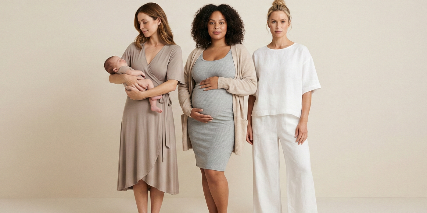 Nous proposons des vêtements, accessoires et appareils pour femmes enceintes, mamans en post-partum et pour l’allaitement